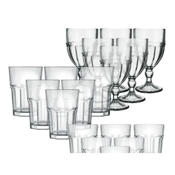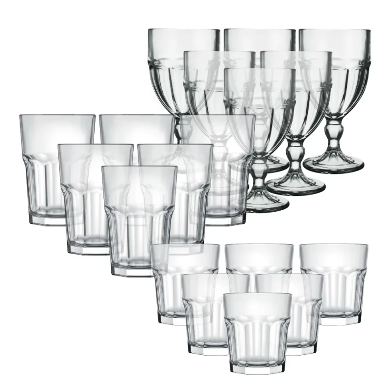 Toda anfitriã adora quando é elogiada por receber bem os seus convidados. Use as peças certas e mostre para todos que você tem bom gosto. Estes copos longos e pequenos com taças de água são feitos de vidro e possui superfície transparente, permitindo distinguir o conteúdo. Com capacidades de 410ml, 340ml e 320ml, eles podem ser usado em ocasiões especiais ou até mesmo no dia a dia, demonstrando alto grau de sofisticação. O produto é muito resistente e pode ser levado à lava-louças para diminuir o trabalho da limpeza após as refeições.