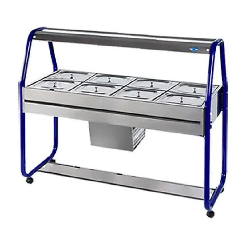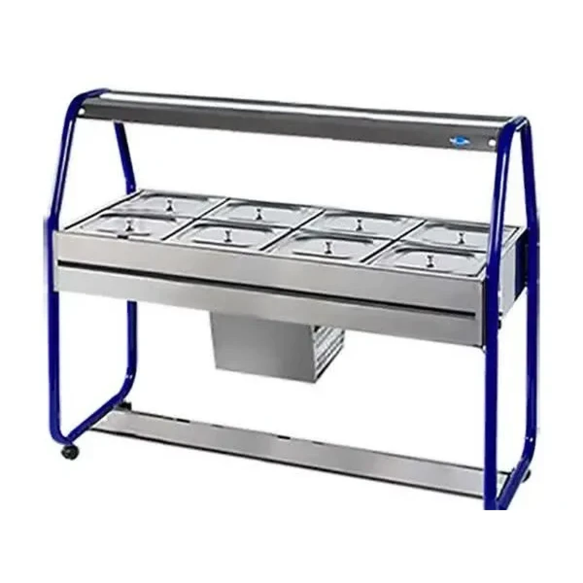 O Carro Térmico Refrigerado de 8 Cubas Ibet, é construído em aço inox brilhante AISI430, suas cubas gastronômicas (GNs) em aço inox AISI304, a estrutura tubular com pintura eletrostática, seus rodízios possuem trava, o protetor salivar é em aço inox brilhante AISI430, possui iluminação fluorescente e compressor hermético de 1/6hp. Especificações do Produto 8 CUBAS: (C x P x A)8001.445 x 595 x 1.255 Voltagem: 110V ou 220V