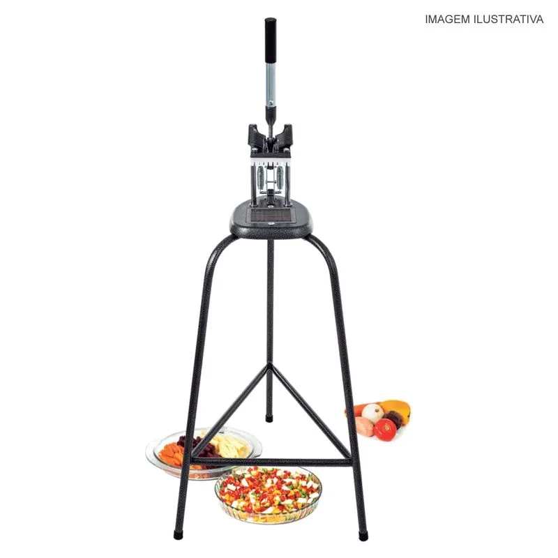 Modelo que conta com prático tripé e utiliza navalhas cambiáveis nos cortes de 6, 8, 10 e 12mm. Ideal para cozinhas industriais.