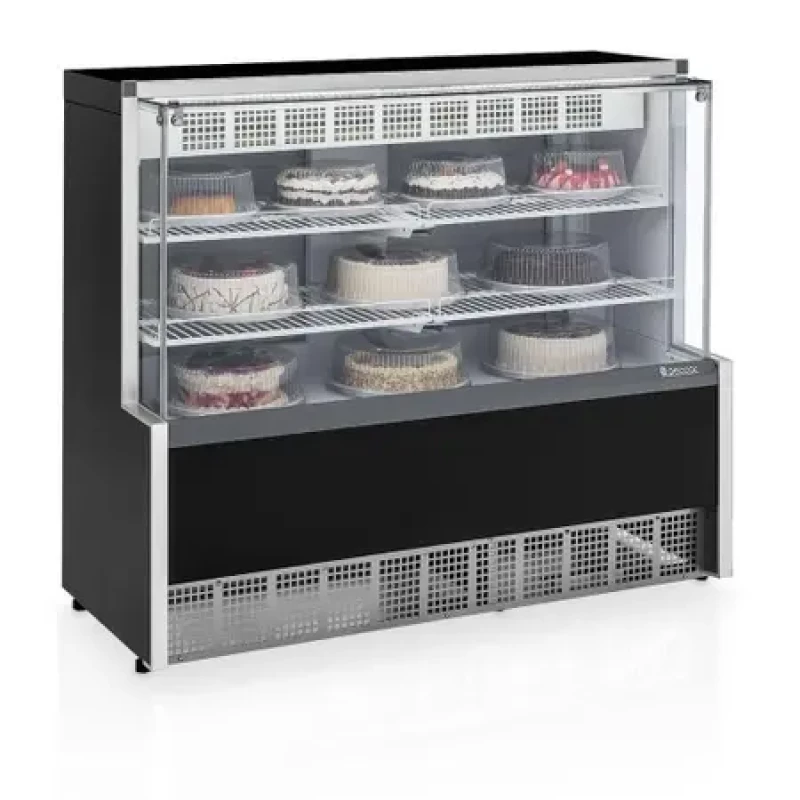 Conservação e exposição de bolos, tortas, doces e confeitos ou bebidas, frios e laticínios;