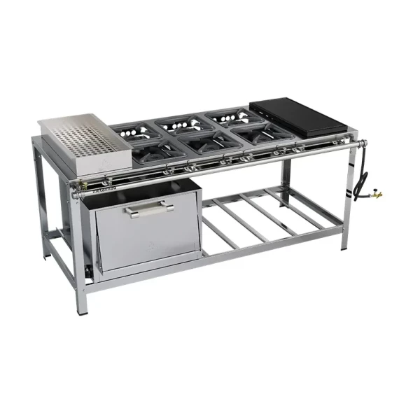 FOGÃO 6 BOCAS SÉRIE LUXO COM FORNO E CHAPA E BANHO MARIA 3QS/3QD BAIXA PRESSÃO - METALMAQ