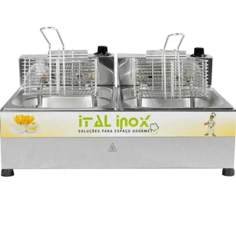 Fritadeira elétrica mesa 2 cuba 10 litros feoi-10 inox 220v ou 127v - ital inox