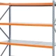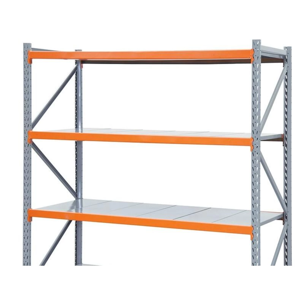 Módulo rack com 04 níveis e suporte de até 500kg de carga. Estruturas de armazenagem indicadas para cargas volumosas e de médio peso acondicionadas manualmente. É composta por longarinas (vigas) que se encaixam nas colunas permitindo a regulagem de altura e o uso de planos metálicos. Trata-se de um sistema versátil, o que permite ser usado em conjunto com mezaninos e pisos intermediários.